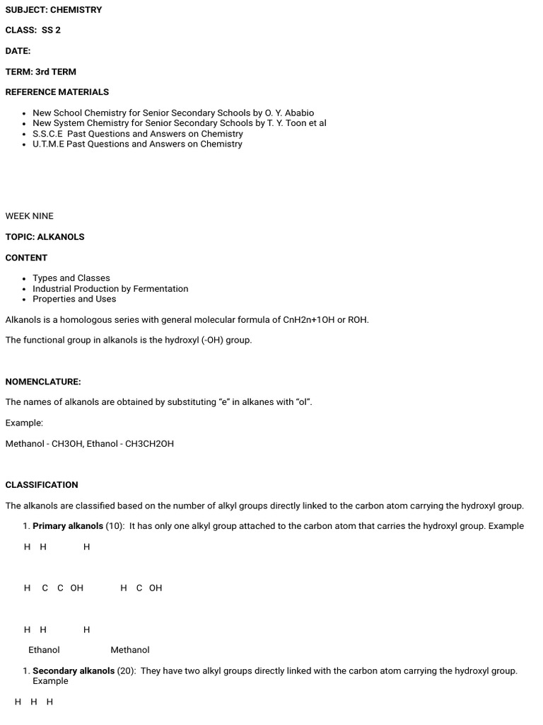 TOPIC: ALKANOLS