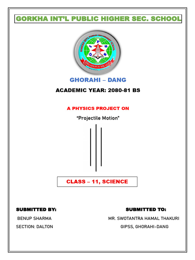 “Projectile Motion” by Benup Sharma of Grade: