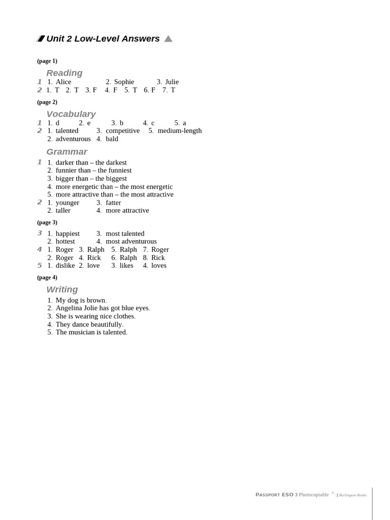 Unit 2 Low-Level Answers