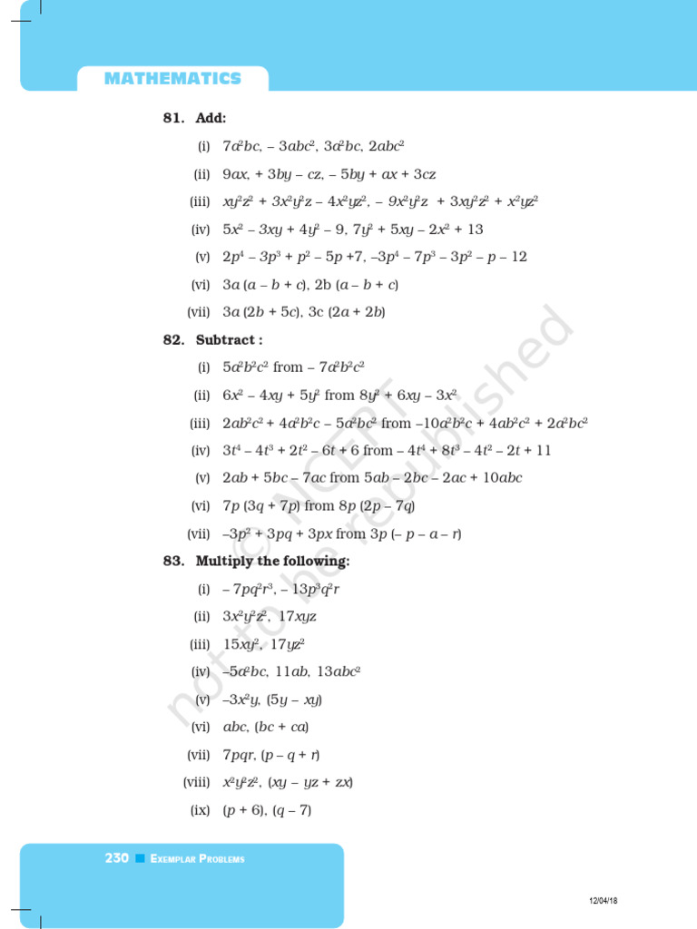 (iii) 2ab2c 2 + 4a2b2c – 5a2bc2 from –10a2b2c + 4ab2c 2 + 2a2bc2