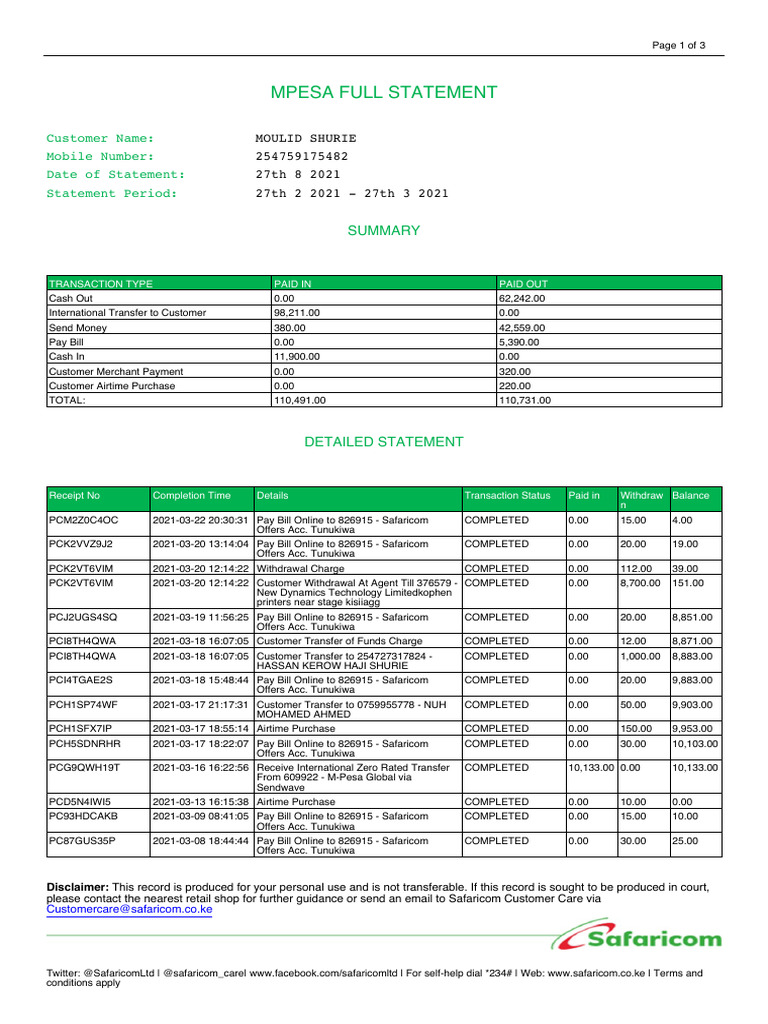 PC167HM4T2 2021-03-01 [Link] Pay Bill Online to 826915 - Safaricom COMPLETED 0.00 20.00 10,277.00