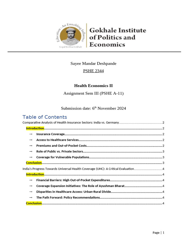 Comparative Analysis of Health Insurance Sectors: India vs. Germany..................................................2