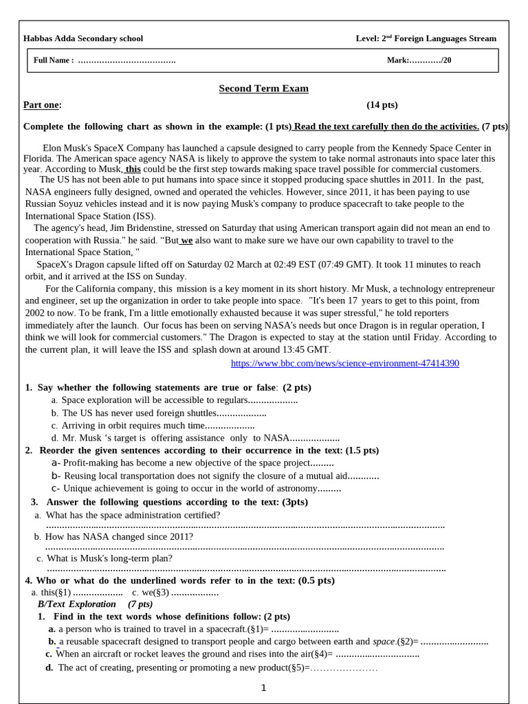 Habbas Adda Secondary school Level: 2nd Foreign Languages Stream