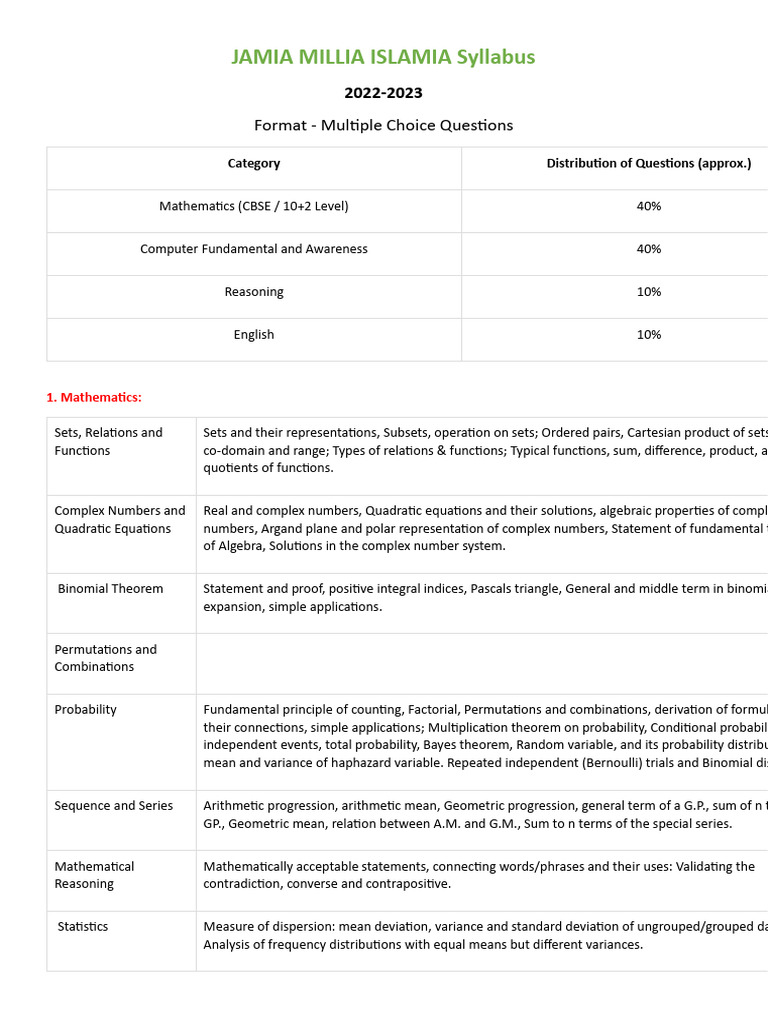 JAMIA MILLIA ISLAMIA Syllabus