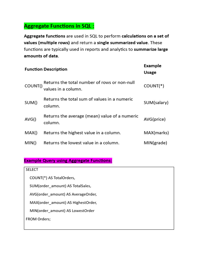 GROUP BY : The GROUP BY clause can be used to divide the rows in a