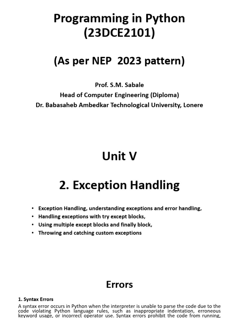 • Exception Handling, understanding exceptions and error handling,