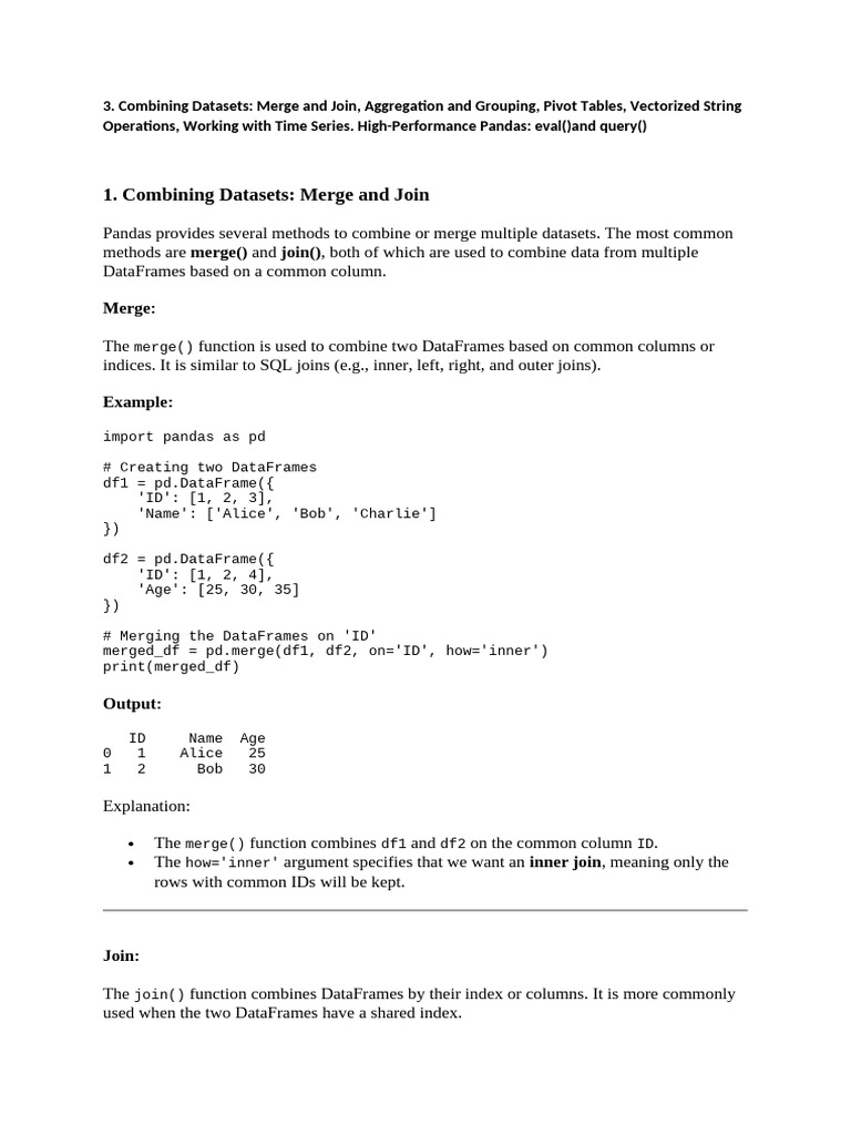 Combining Datasets: Merge and Join, Aggregation and Grouping, Pivot Tables, Vectorized String