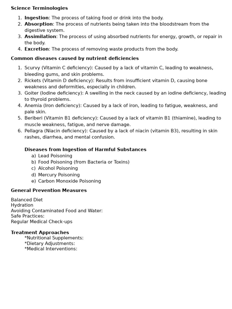 Common diseases caused by nutrient deficiencies