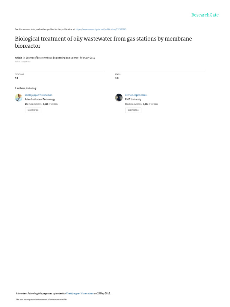 no accumulation of oil in the reactor. The removal efficiency water in a membrane bioreactor. Water Res. 34(14): 3621–3629.