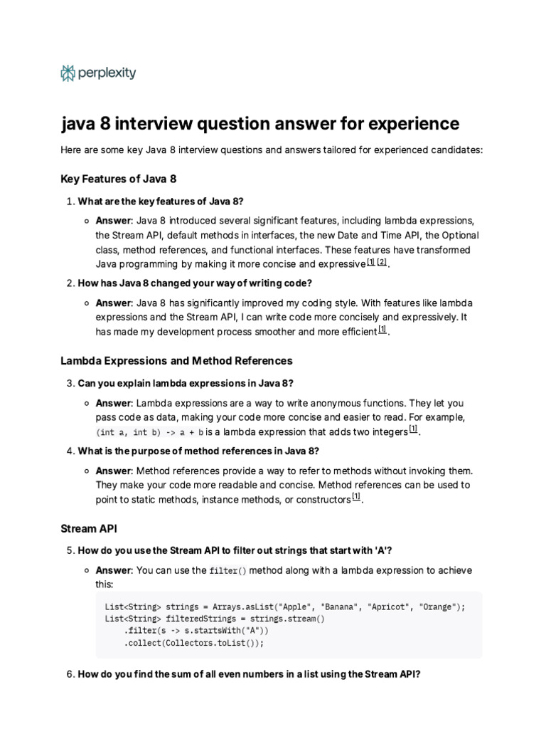 Here are some of the most asked Java 8 interview questions for experienced candidates, along