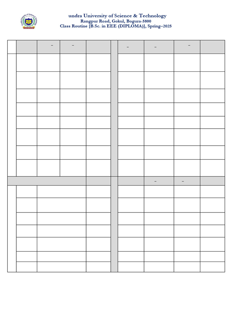 BAN 1201 Functional Bengali Language 2.0 EEE 339 Power System I 3.0