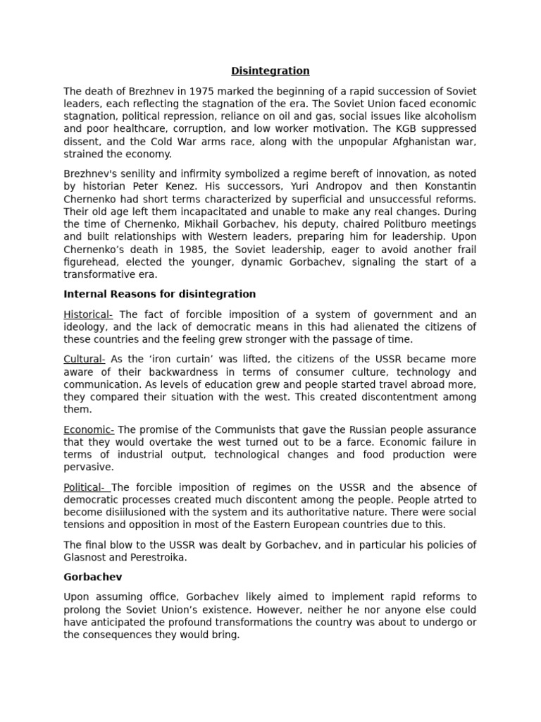 Internal Reasons for disintegration