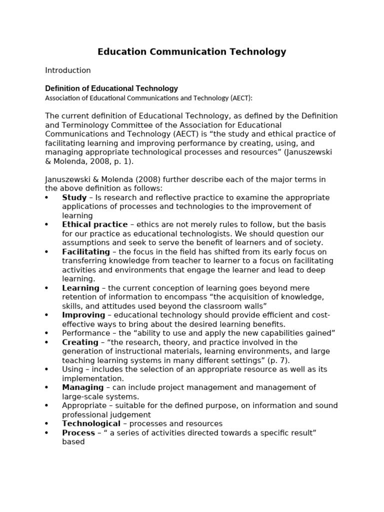 Communications and Technology (AECT) is “the study and ethical practice of