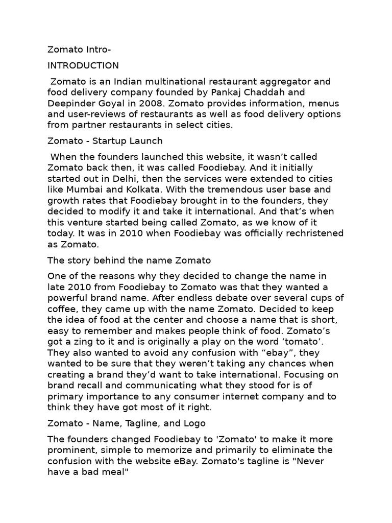 coffee, they came up with the name Zomato. Decided to keep