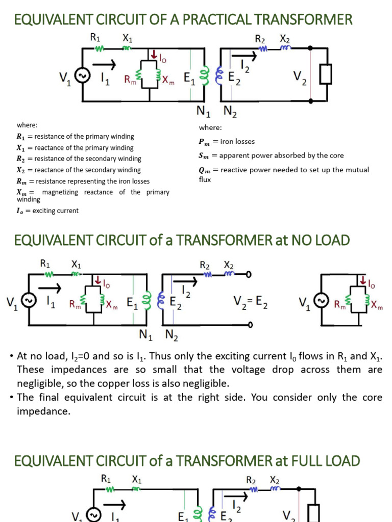 EQUIVALENT CIRCUIT of a TRANSFORMER at FULL LOAD