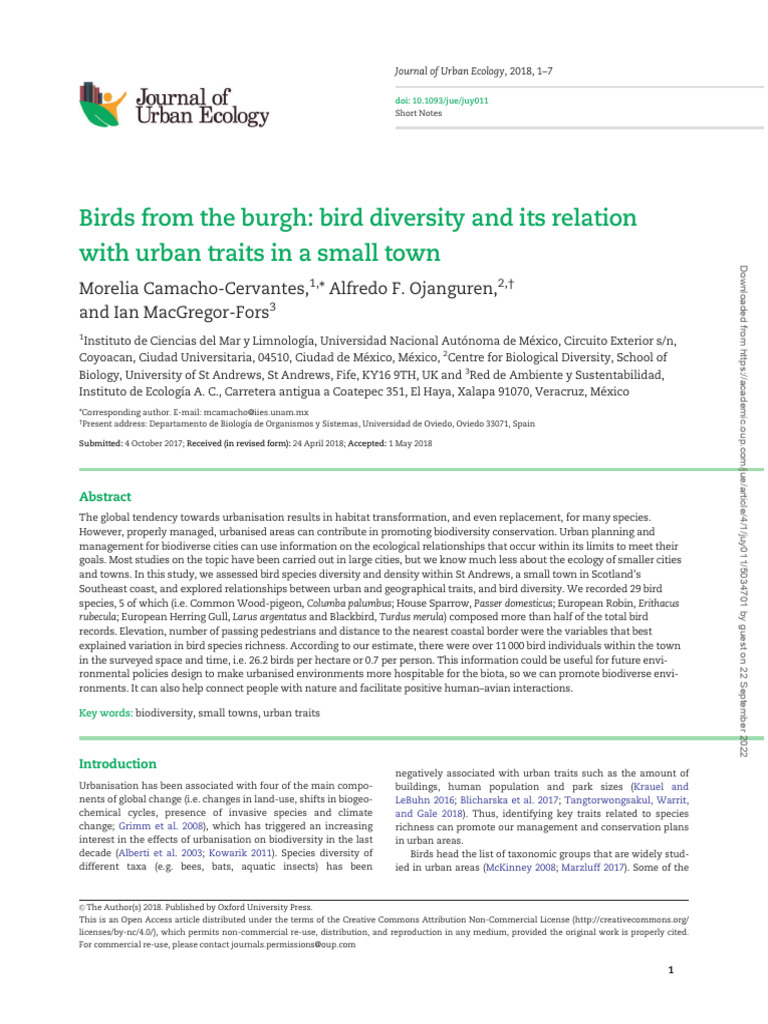 interest in the effects of urbanisation on biodiversity in the last in urban areas.