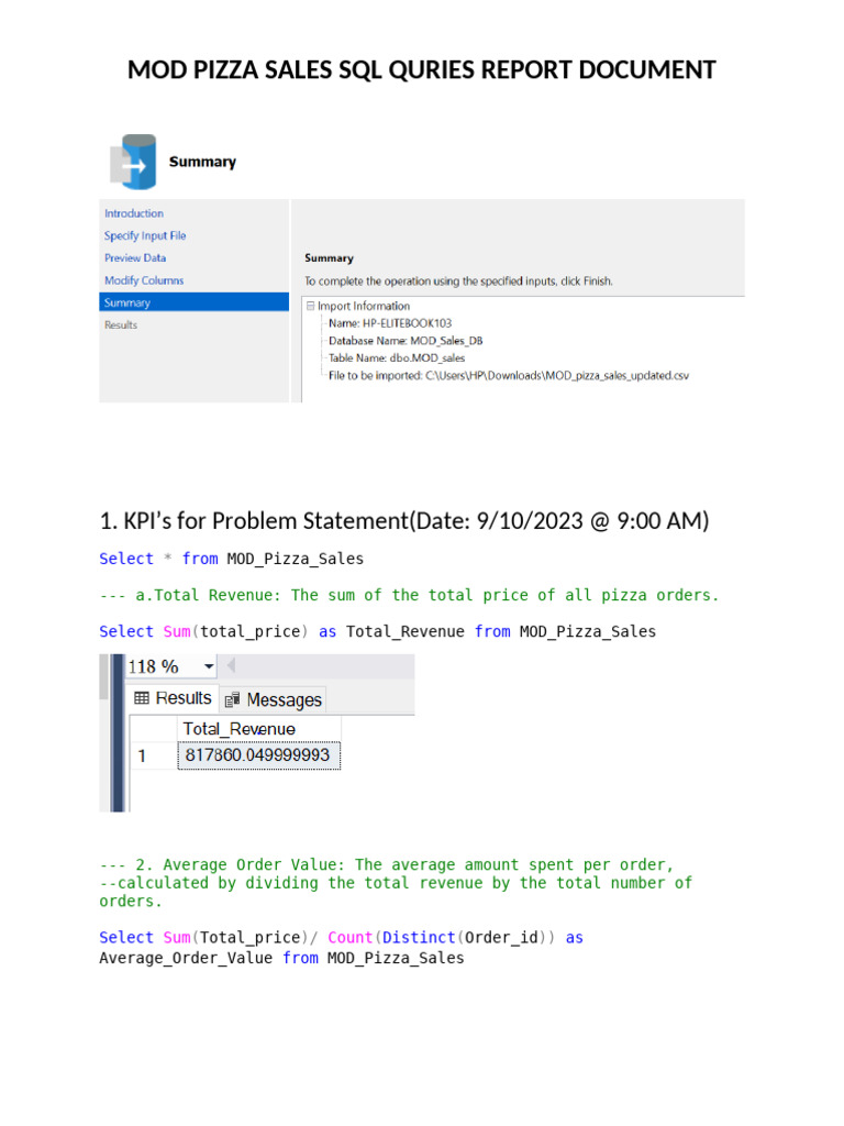 MOD PIZZA SALES SQL QURIES REPORT DOCUMENT