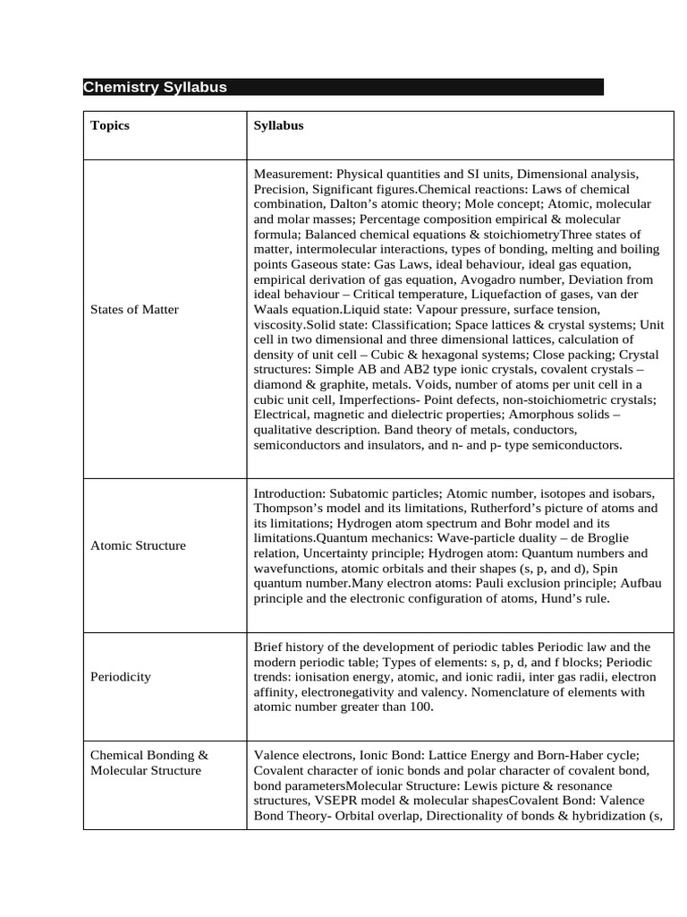 Chemistry Syllabus