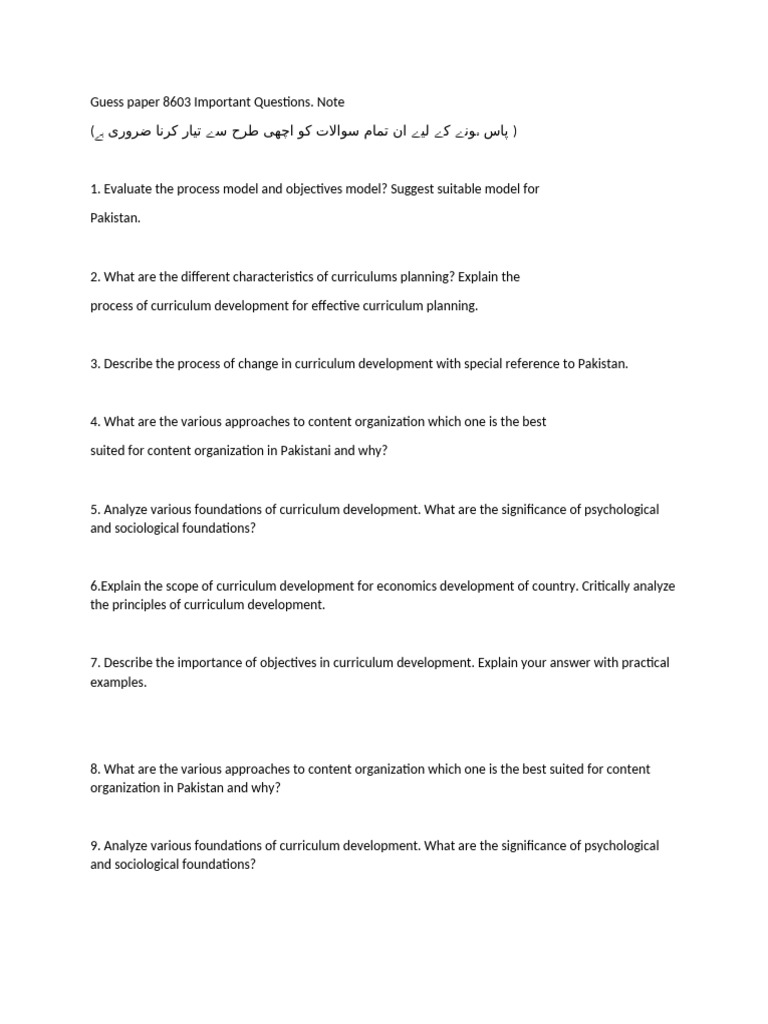 Guess paper 8603 Important Questions.