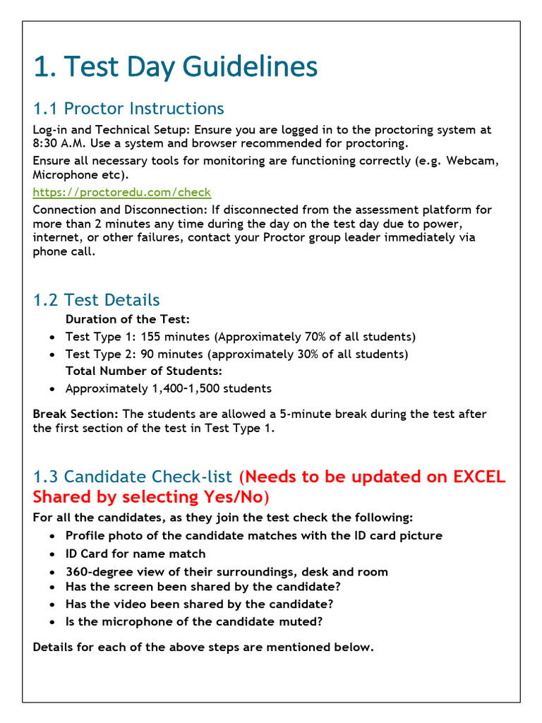 Login IDs and Passwords: Proctors will be provided with login credentials (ID and