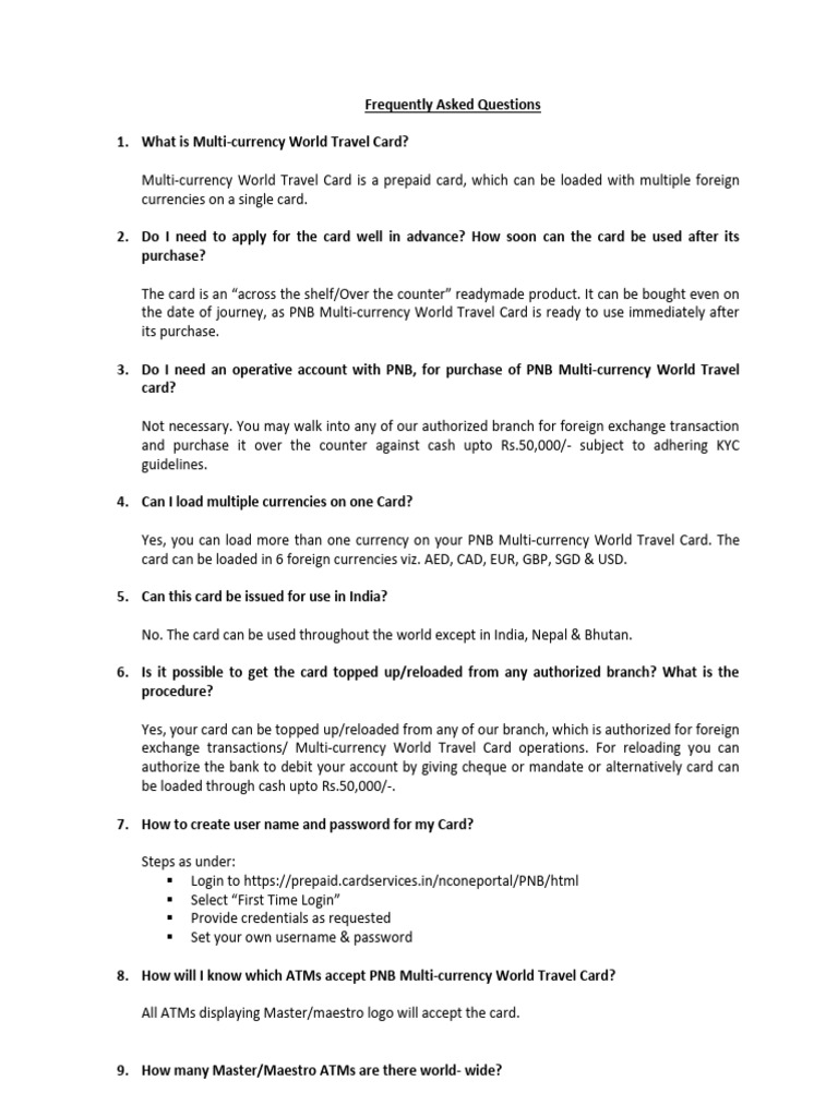 the date of journey, as PNB Multi-currency World Travel Card is ready to use immediately after
