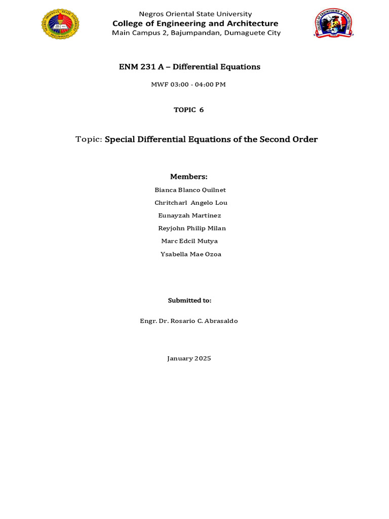 Topic: Special Differential Equations of the Second Order