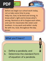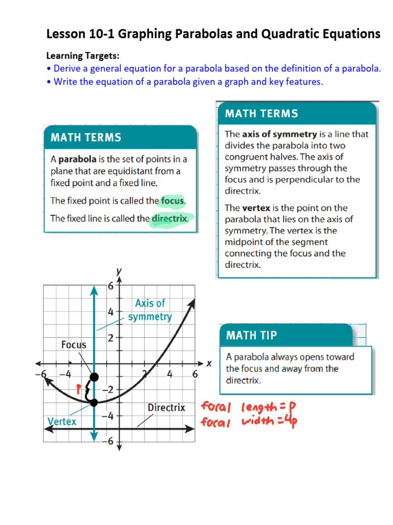 Lesson 10-1 Graphing Parabolas and Quadratic Equations