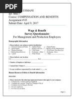 64. The formal severance policy for exempt employees is based on: Flat amount ($____________) Management discretion 1 week per year of service 2 weeks per year of service 3 weeks per year of service More than 3 weeks per year of service 65. The formal severance policy for nonexempt employees is based on: Flat amount ($____________) Management discretion 1 week per year of service 2 weeks per year of service 3 weeks per year of service More than 3 weeks per year of service BENEFITS OVERVIEW 66. What is the average percent of salary that is allocated to benefits? (Benefits above base salary include all voluntary and mandated benefits) _____________% 67. Total company payroll expense (wages and benefits) as a percent of total revenue (most recent fiscal year) _____________% PART-TIME EMPLOYEES 68. How do you determine pay levels for part-time employees: Pay is determined by pay structure minimums and maximums Pay is based on differential applied to full-time salary Market pricing Other 69. What is the minimum number of hours per week that part-time employees are required to work to qualify for: Prorated/Reduced benefits: __________ hours/week Full benefits: __________ hours/week Benefits not provided to part-time employees.