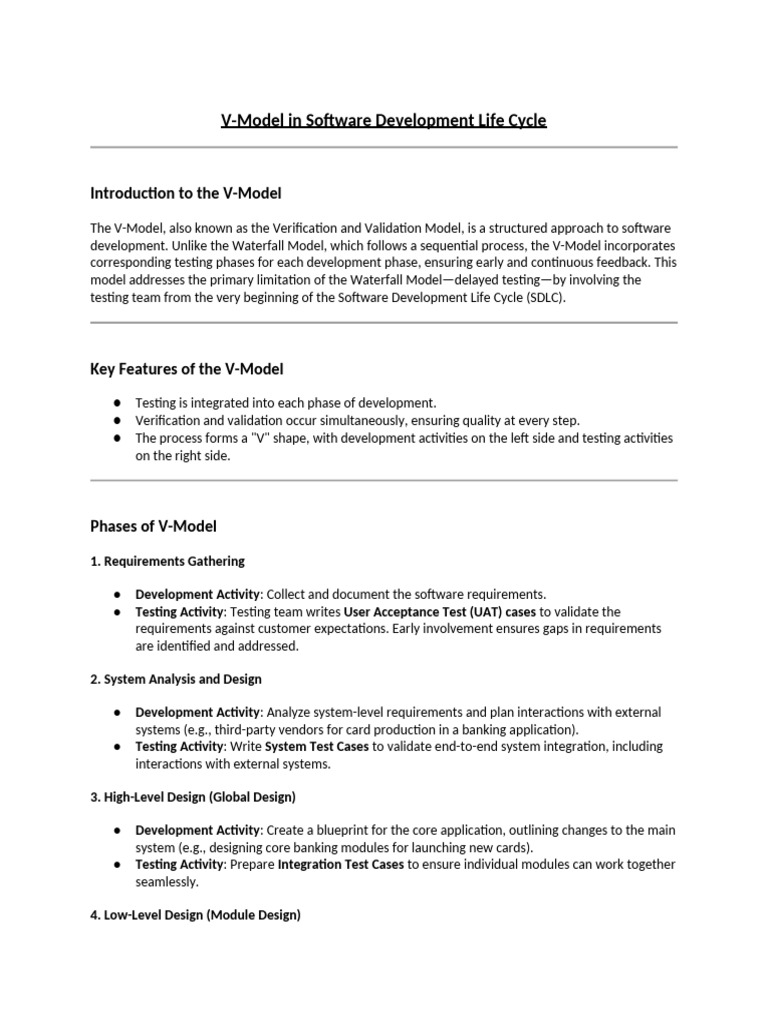 development. Unlike the Waterfall Model, which follows a sequential process, the V-Model incorporates