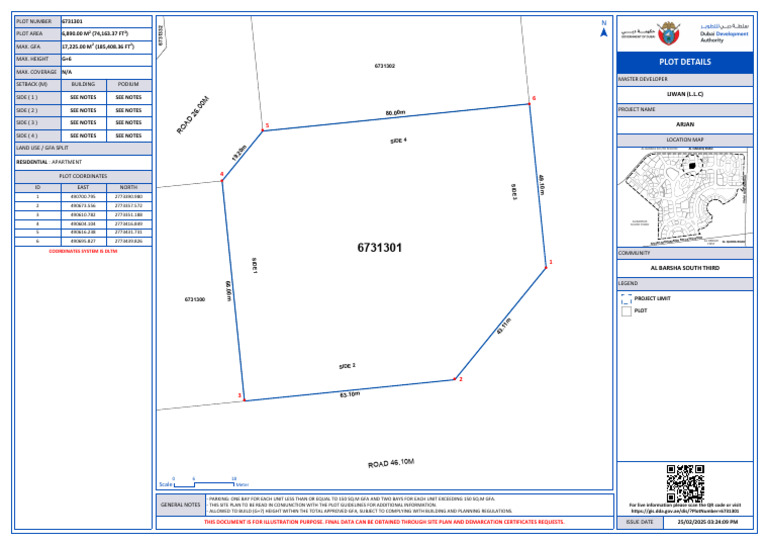THIS DOCUMENT IS FOR ILLUSTRATION PURPOSE. FINAL DATA CAN BE OBTAINED THROUGH SITE PLAN AND DEMARCATION CERTIFICATES REQUESTS. ISSUE DATE 25/02/2025 [Link] PM