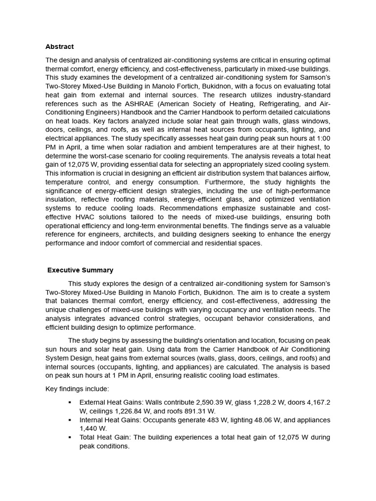 This study explores the design of a centralized air-conditioning system for Samson’s