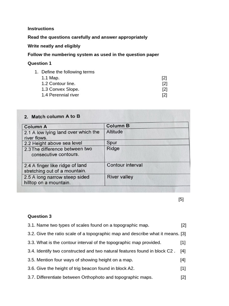 3.5. Mention four ways of showing height on a map. [4]