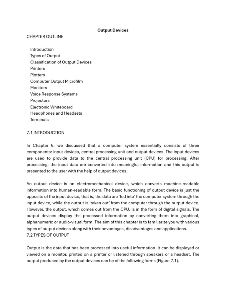 output produced by the output devices can be of the following forms (Figure 7.1).