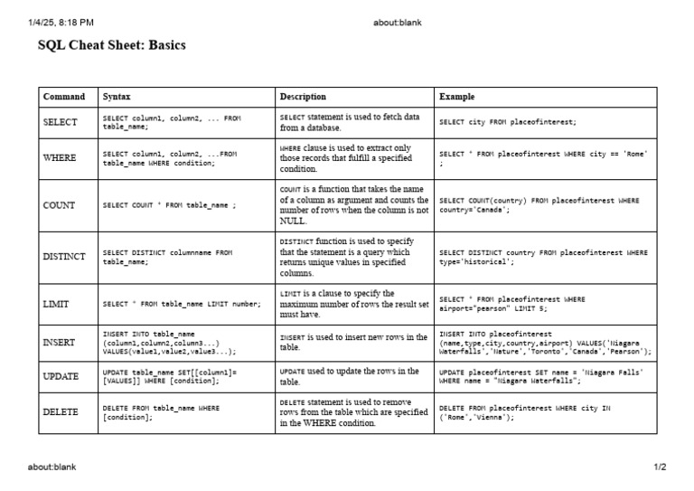 SELECT DISTINCT columnname FROM that the statement is a query which SELECT DISTINCT country FROM placeofinterest WHERE
