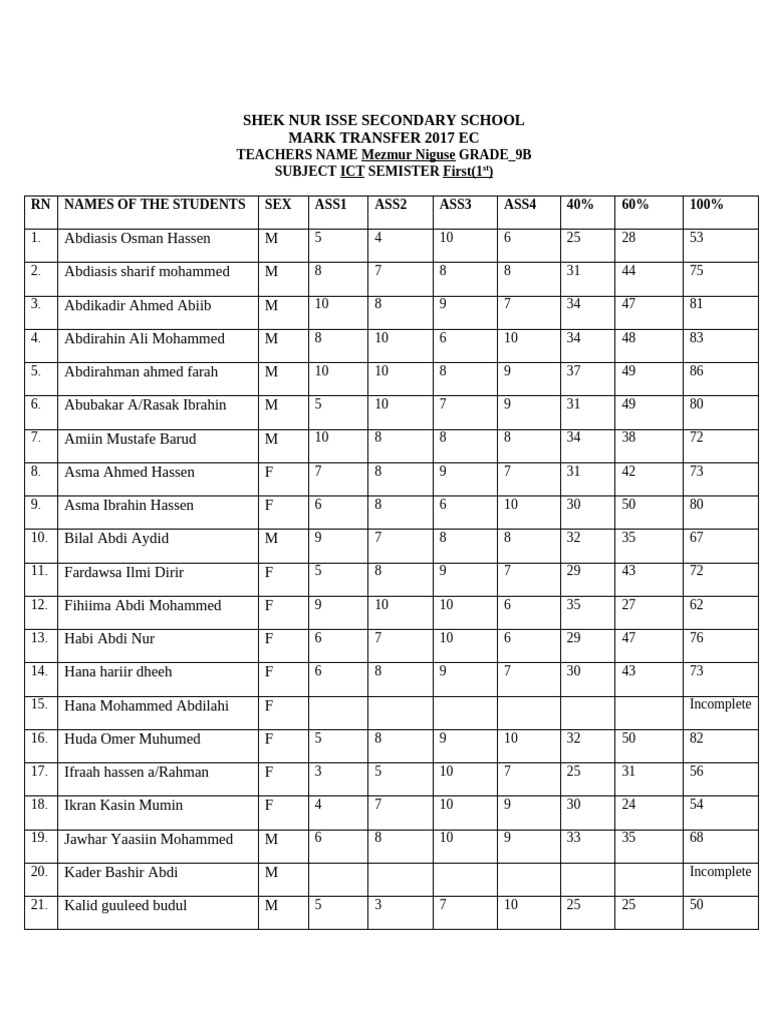 52. Abdiasis mahamud M Incomplete