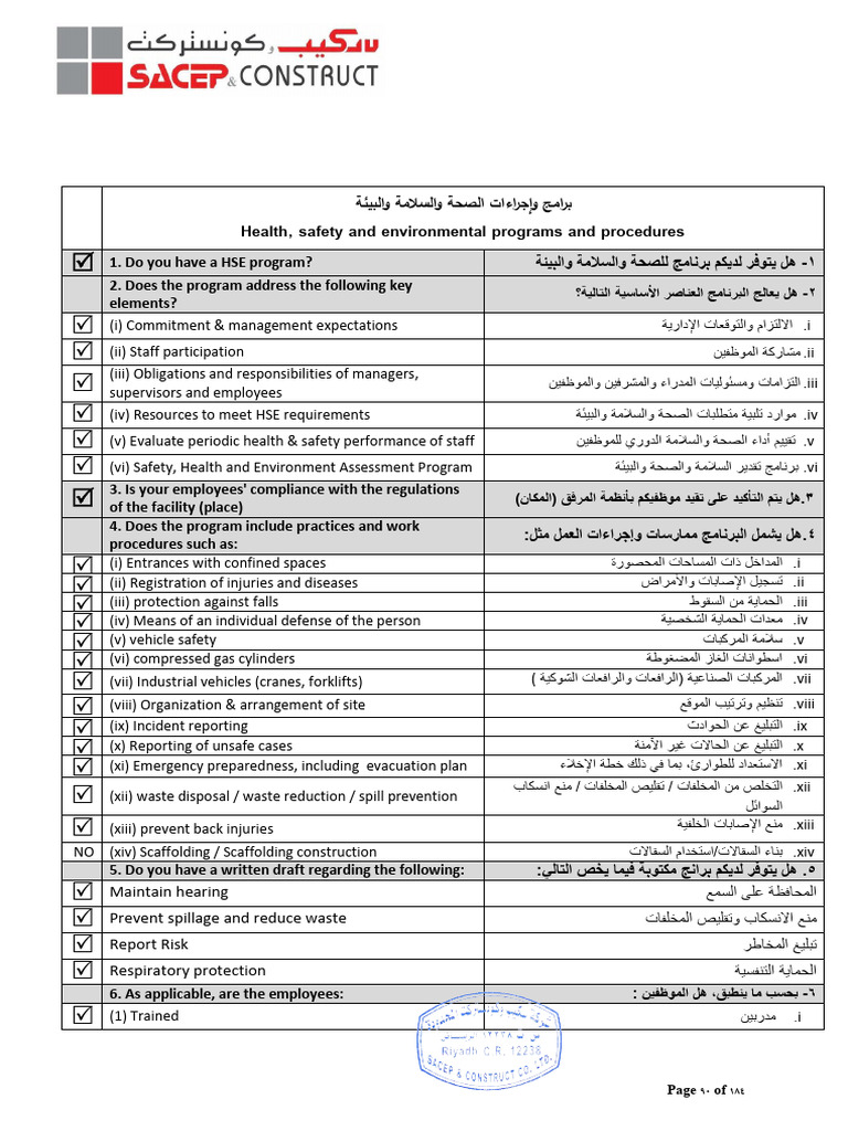 1. Do you have a HSE program? هل يتوفر لديكم برنامج للصحة والسالمة والبيئة-1