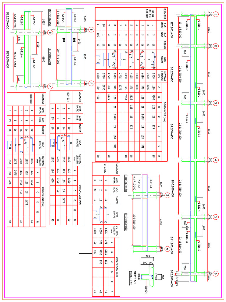 1450 ELEMENT BAR BAR REBAR BAR CUTTING DIMENSIONS (mm)