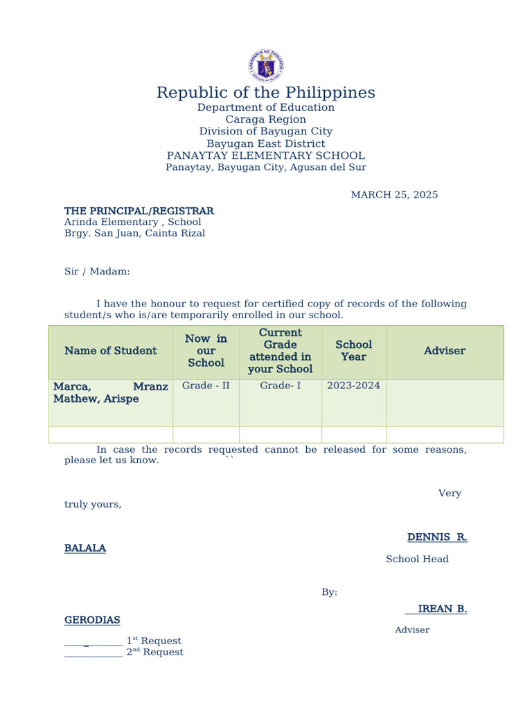 ____________ 2nd Request