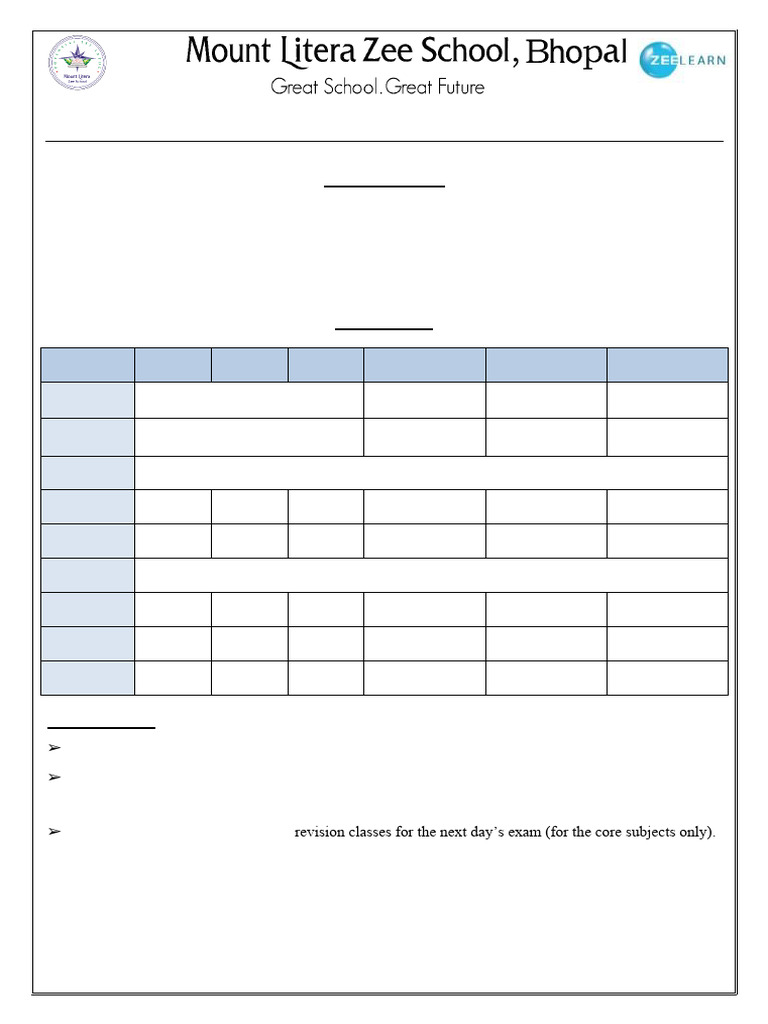 ➢ Revision time: Students will have 2 revision classes for the next day’s exam (for the core subjects only).