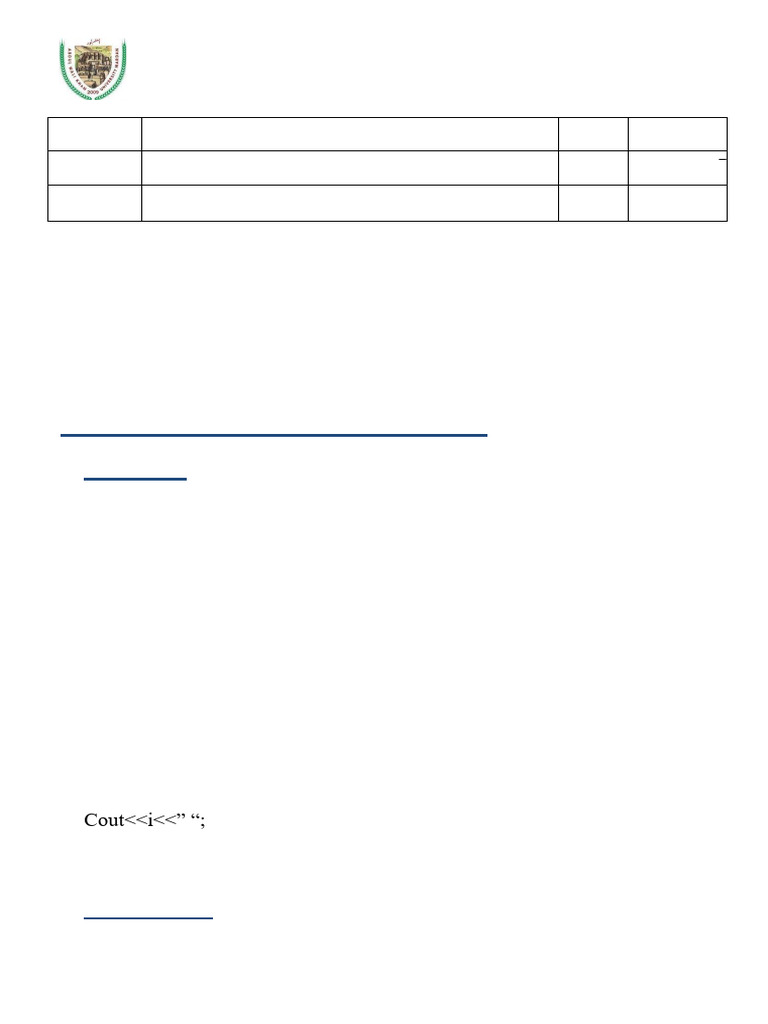 Cout<<i<<” “;