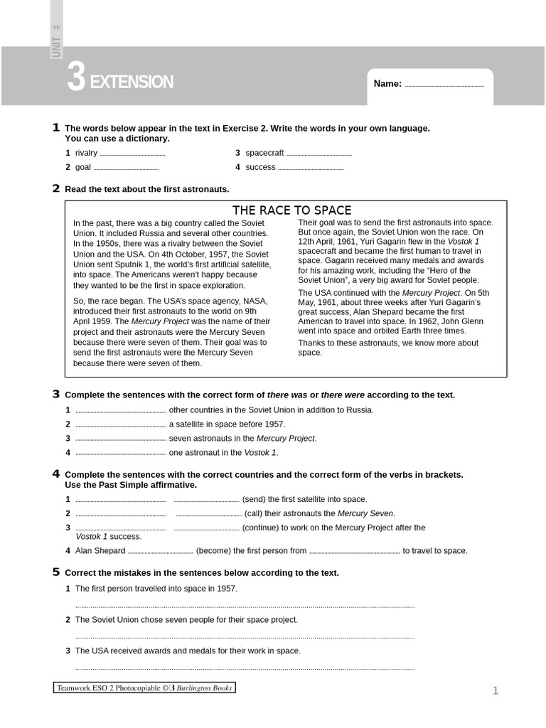 4 Alan Shepard ............................................... (become) the first person from ................................................................. to travel to space.