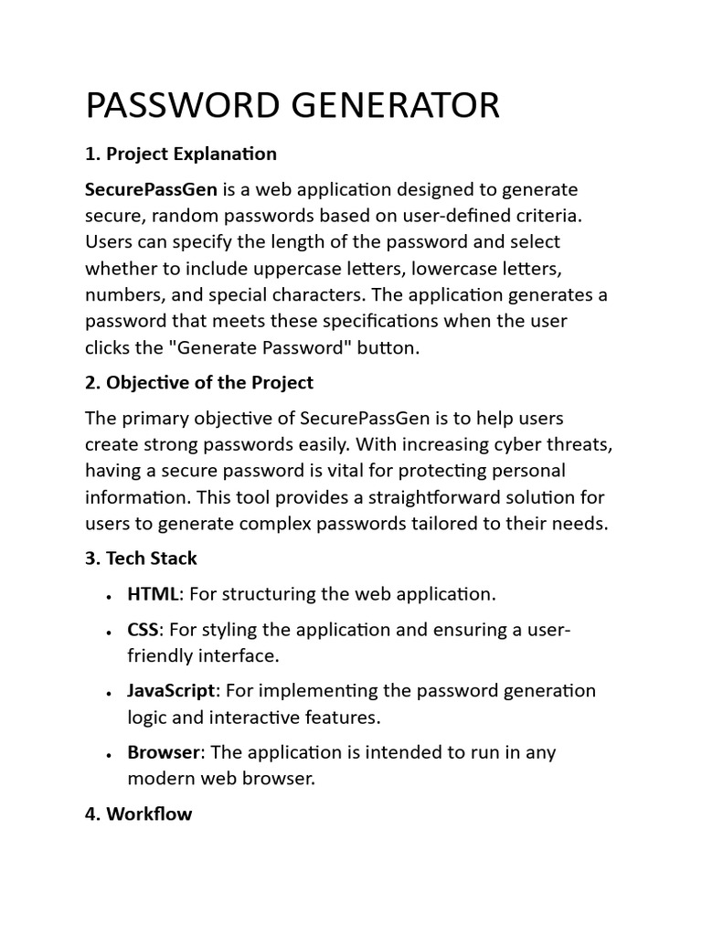• JavaScript: For implementing the password generation