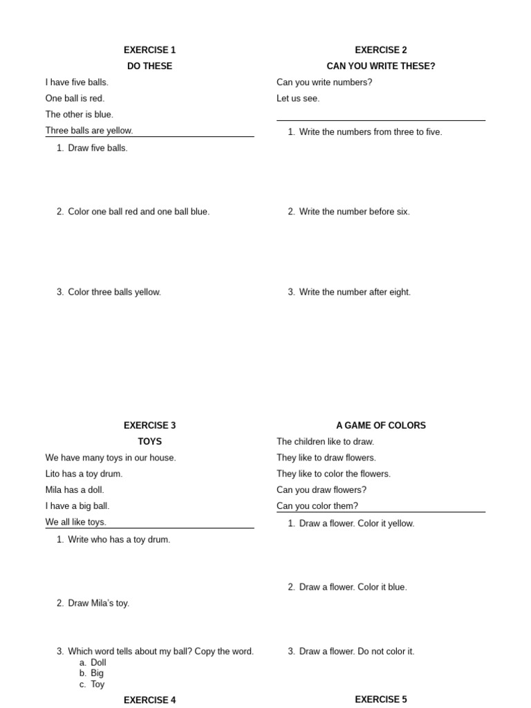 3. Which word tells about my ball? Copy the word. 3. Draw a flower. Do not color it.