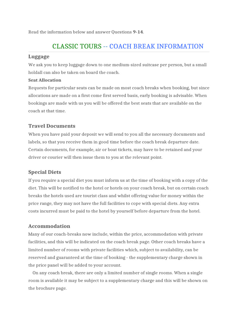 Choose the appropriate letters A-D and write them in boxes 9-14 on your answer sheet.