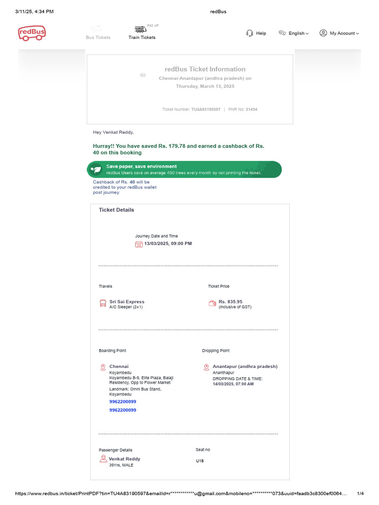 https://www.redbus.in/ticket/PrintPDF?tin=TU4A83190597&emailId=r************u@gmail.com&mobileno=**********073&uuid=faadb3c8300ef0064… 1/4