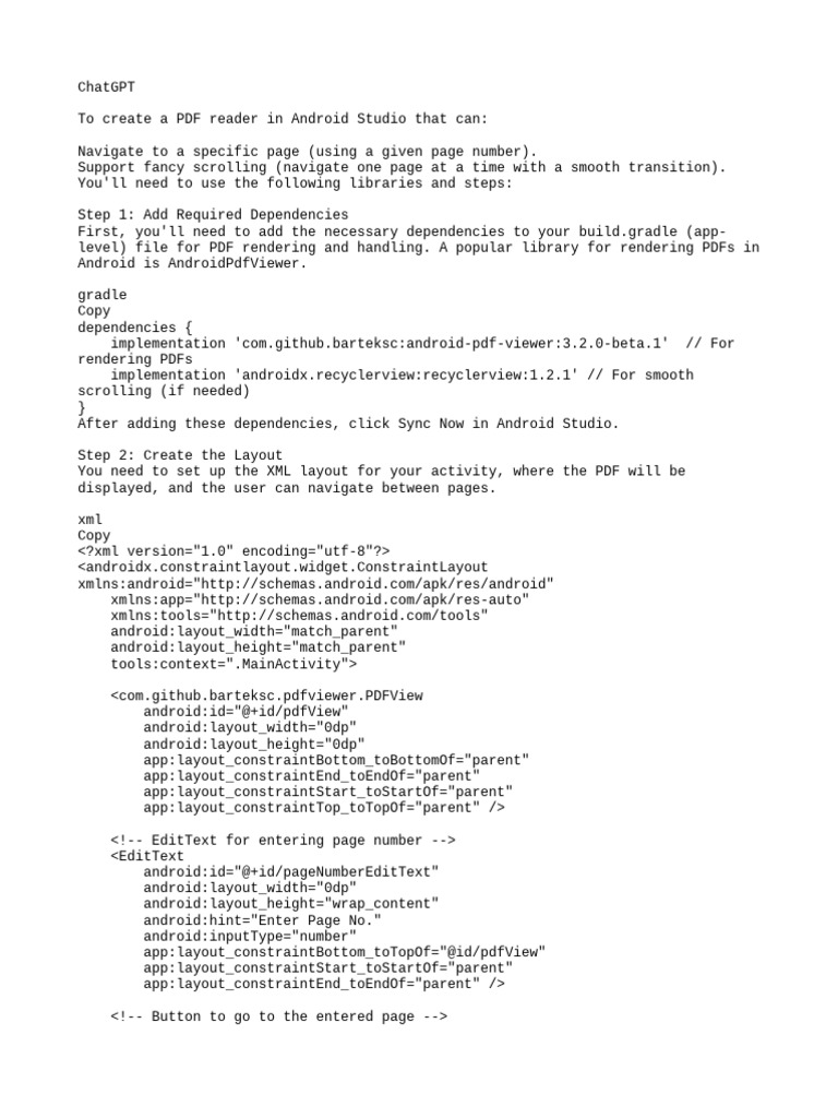 displaying the PDF and a EditText + Button for jumping to a specific page.