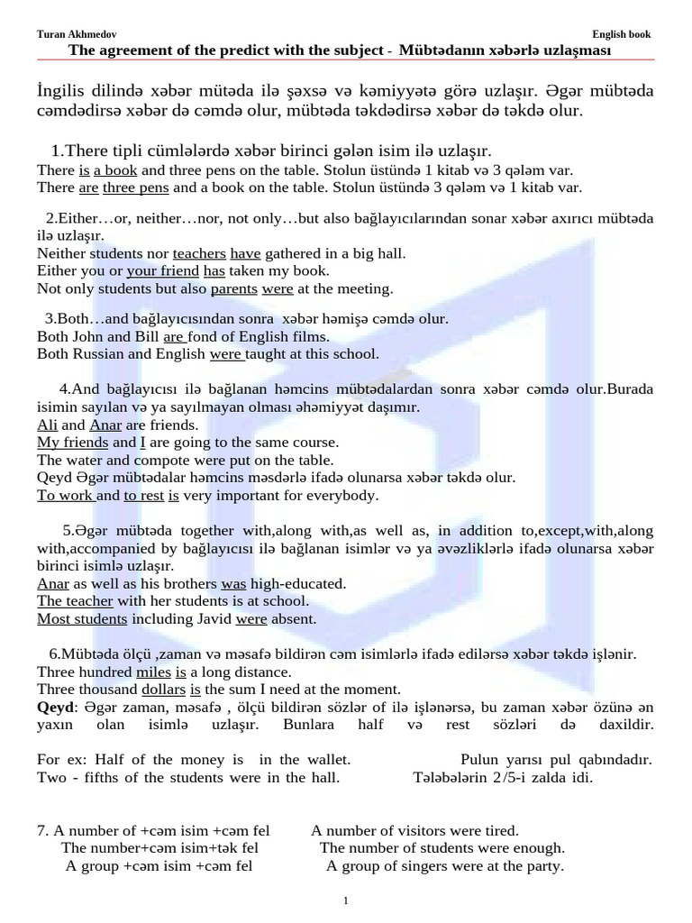 The agreement of the predict with the subject - Mübtədanın xəbərlə uzlaşması
