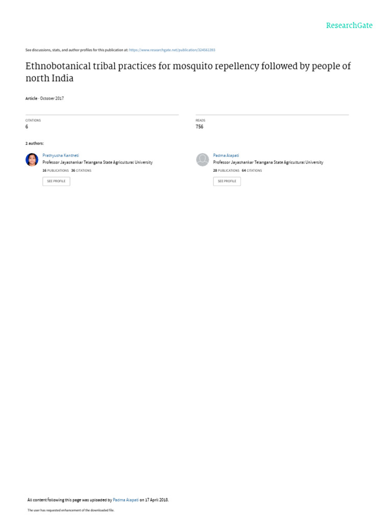 Science, Professor Jayashankar other way to repel mosquitoes. The present paper reviews the tribal medicinal practices that were