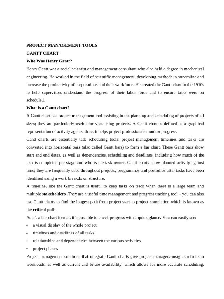 straightforward to understand and use. A Gantt chart is not just another fancy diagram for