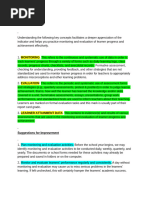 and strategies (e.g., quarterly assessments, pretest & posttest) in order to judge learner